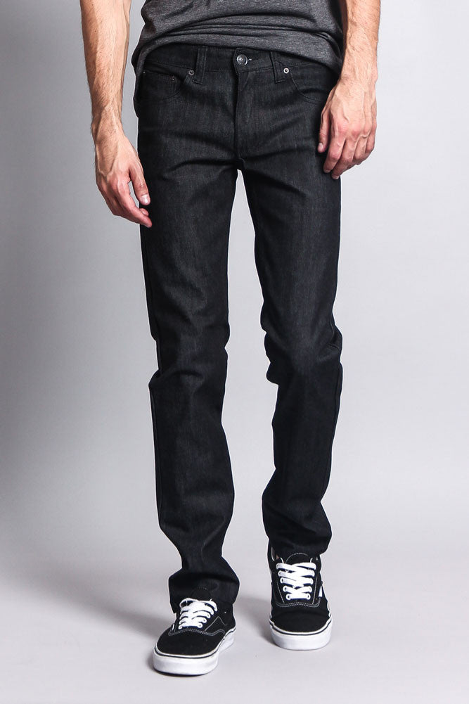 Men's Skinny Fit Raw Denim Jeans (Black)