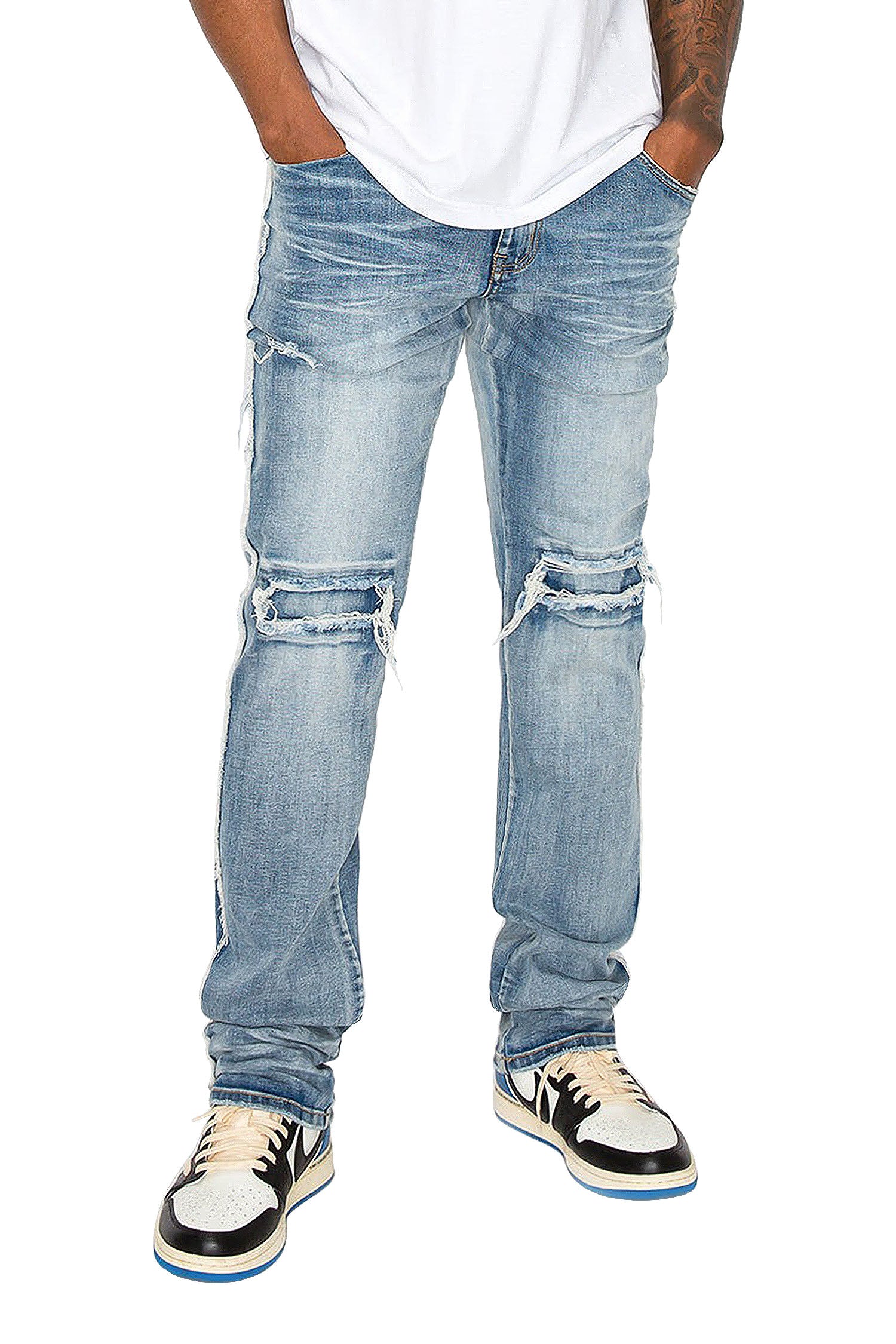 Men's Stacked Fit Raw Edge Distressed Denim Jeans