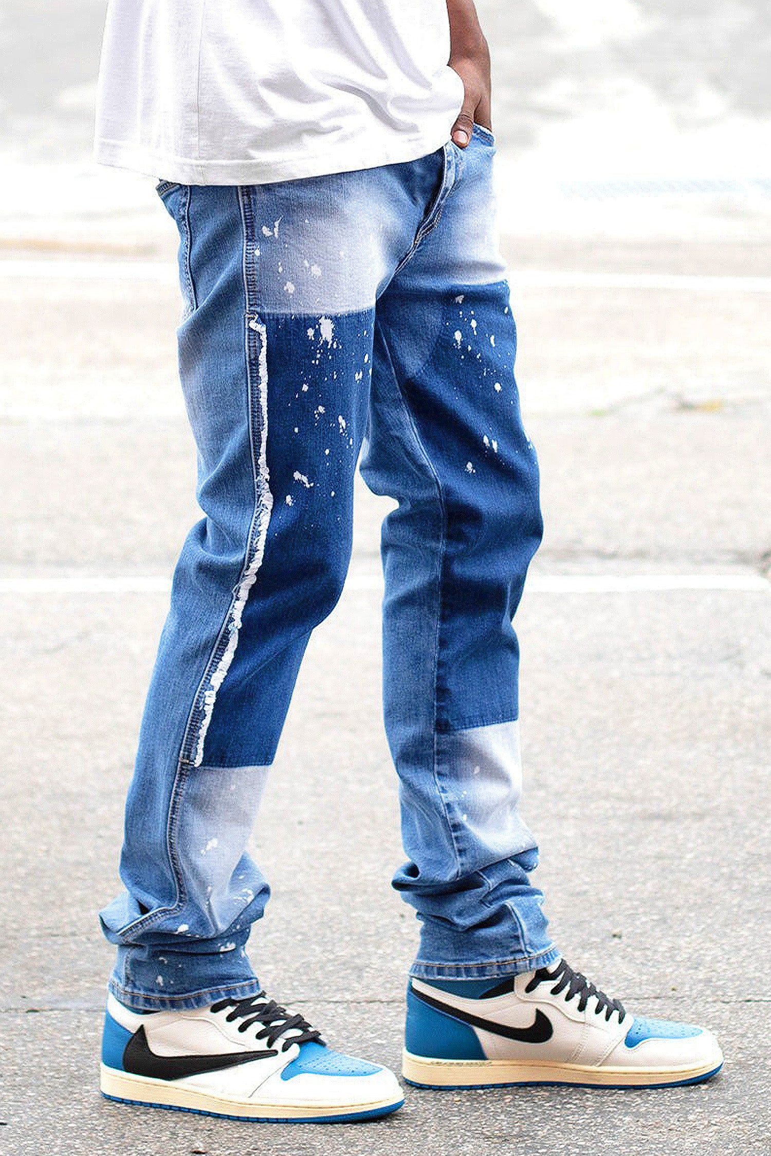 Men's Stacked Fit Repaired Paint Splatter Denim Jeans