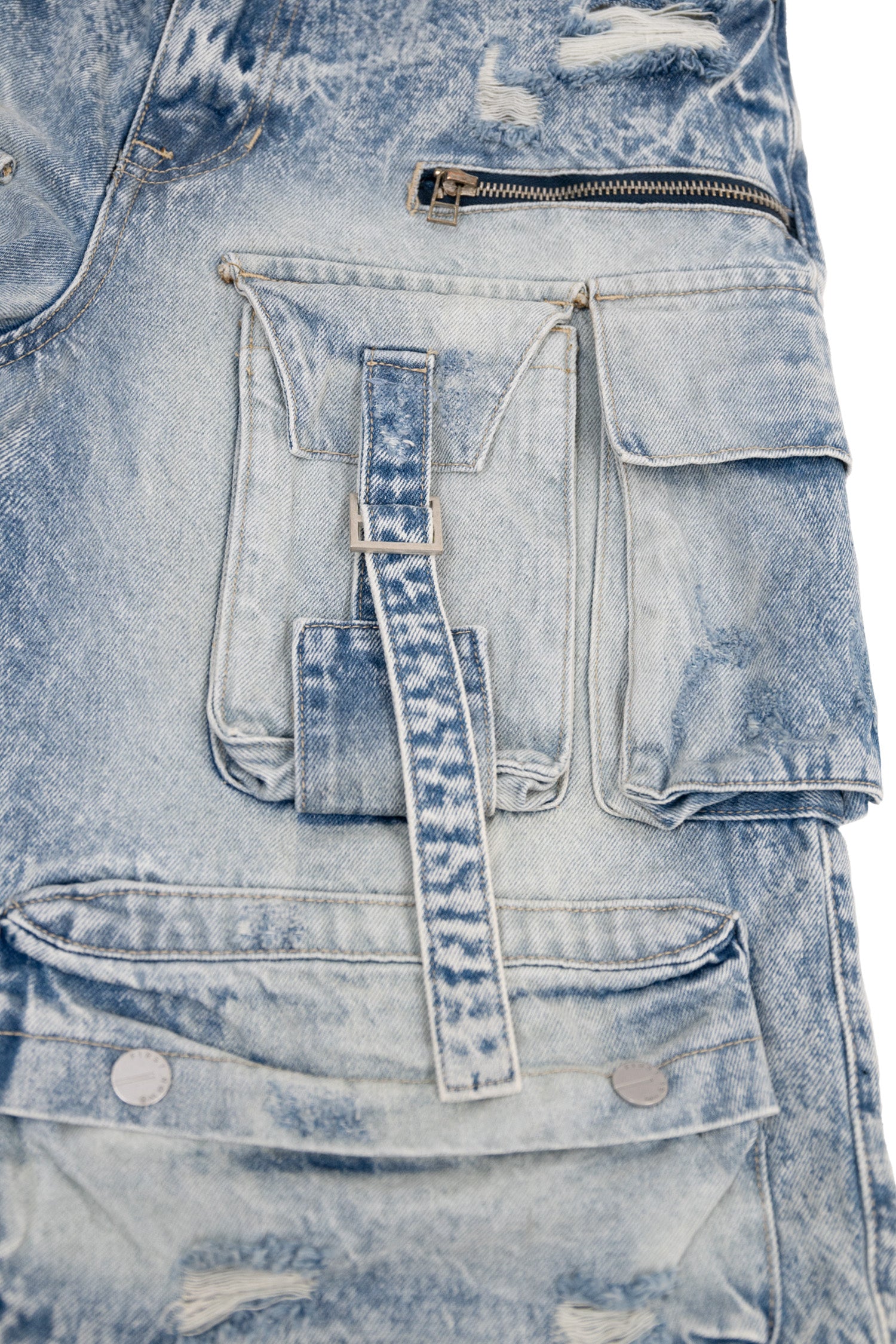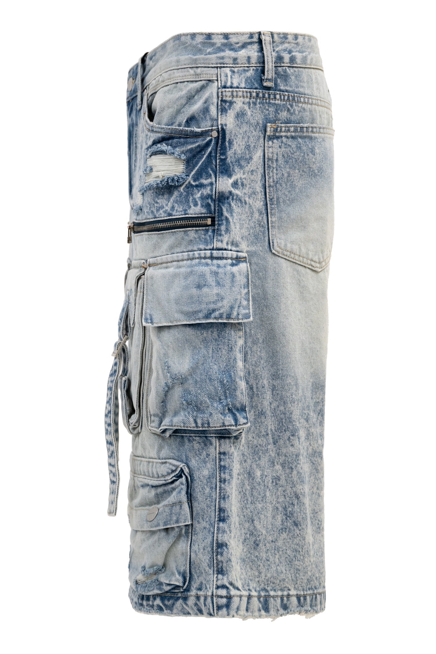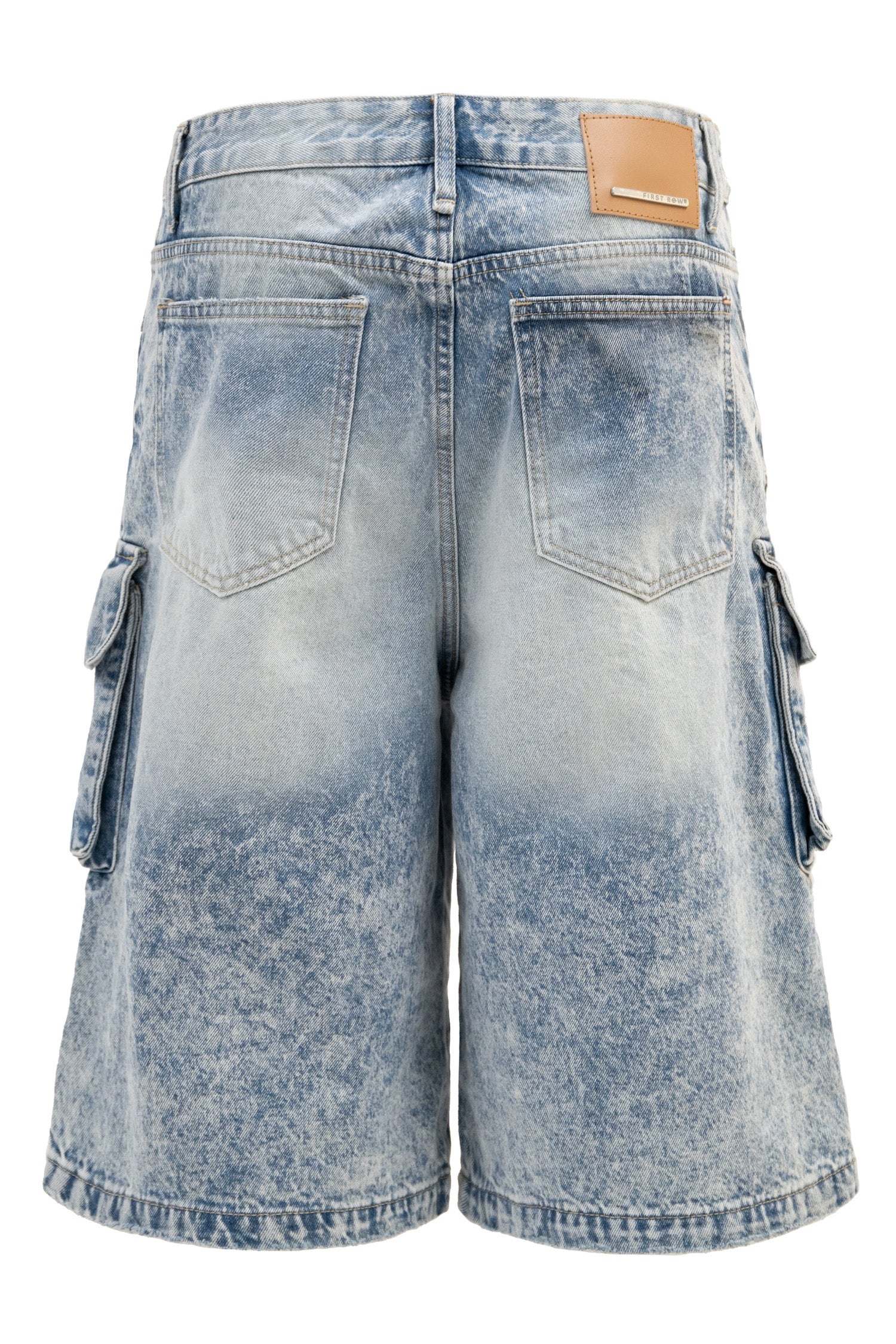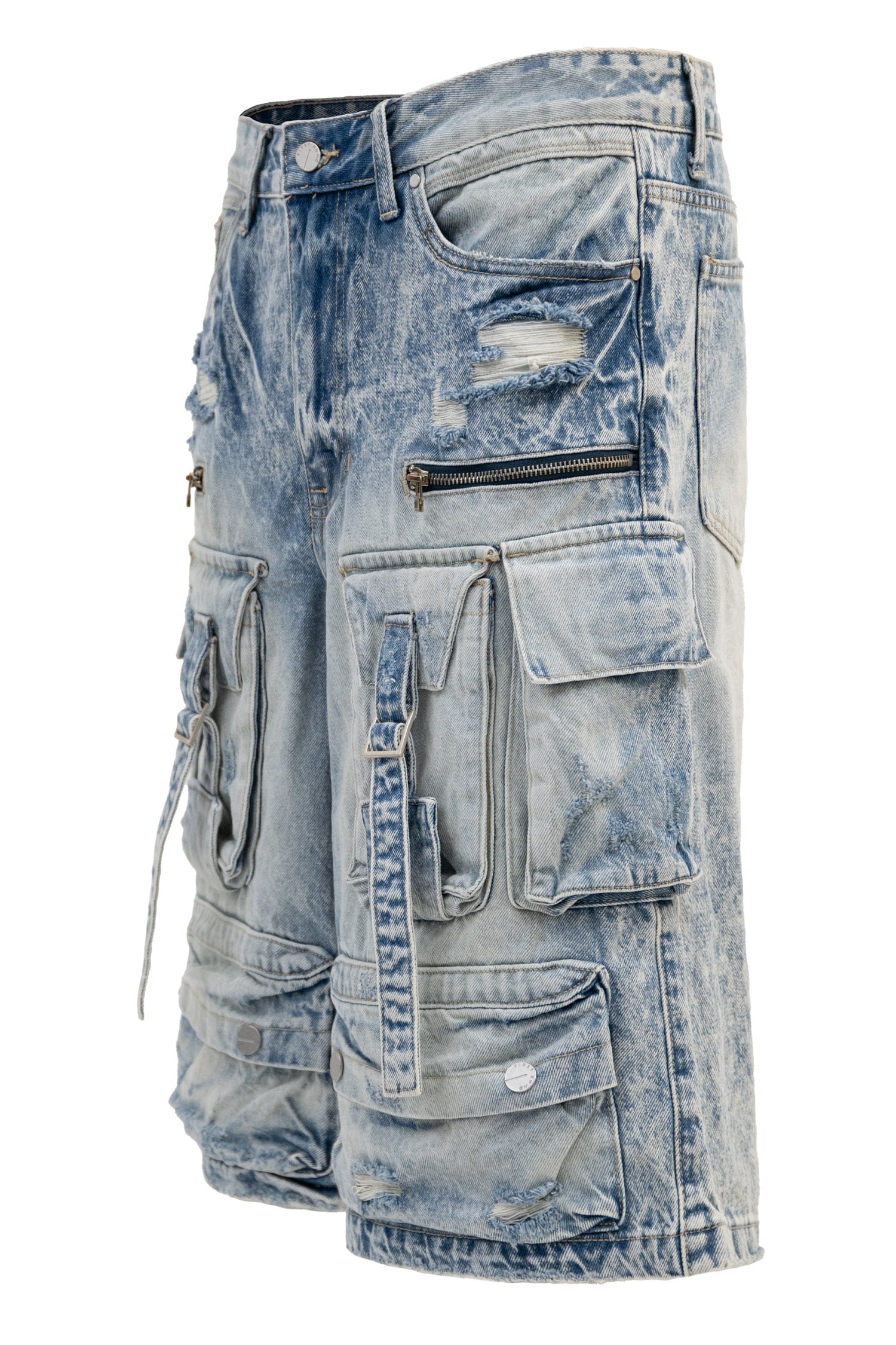 Men's Utility Acid Washed Baggy Cargo Denim Shorts