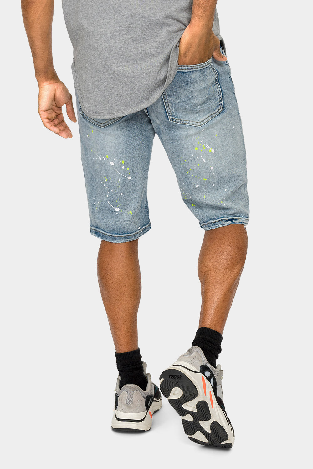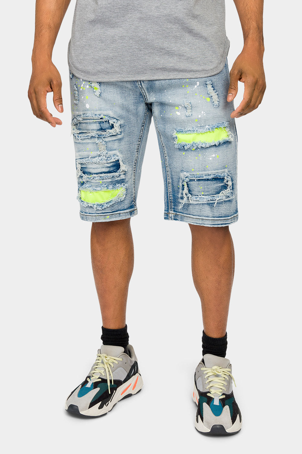 Neon Paint Splatter Denim Shorts