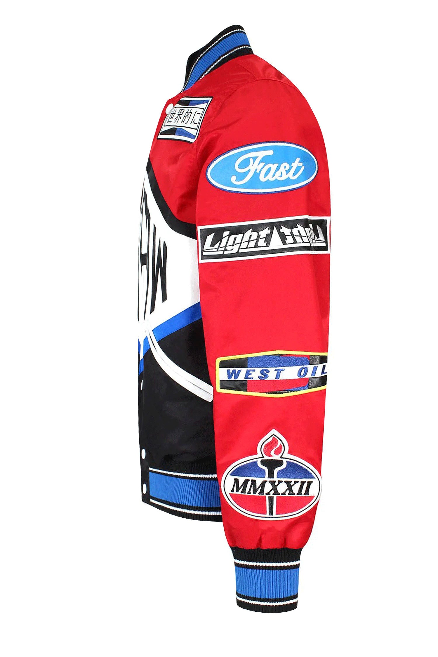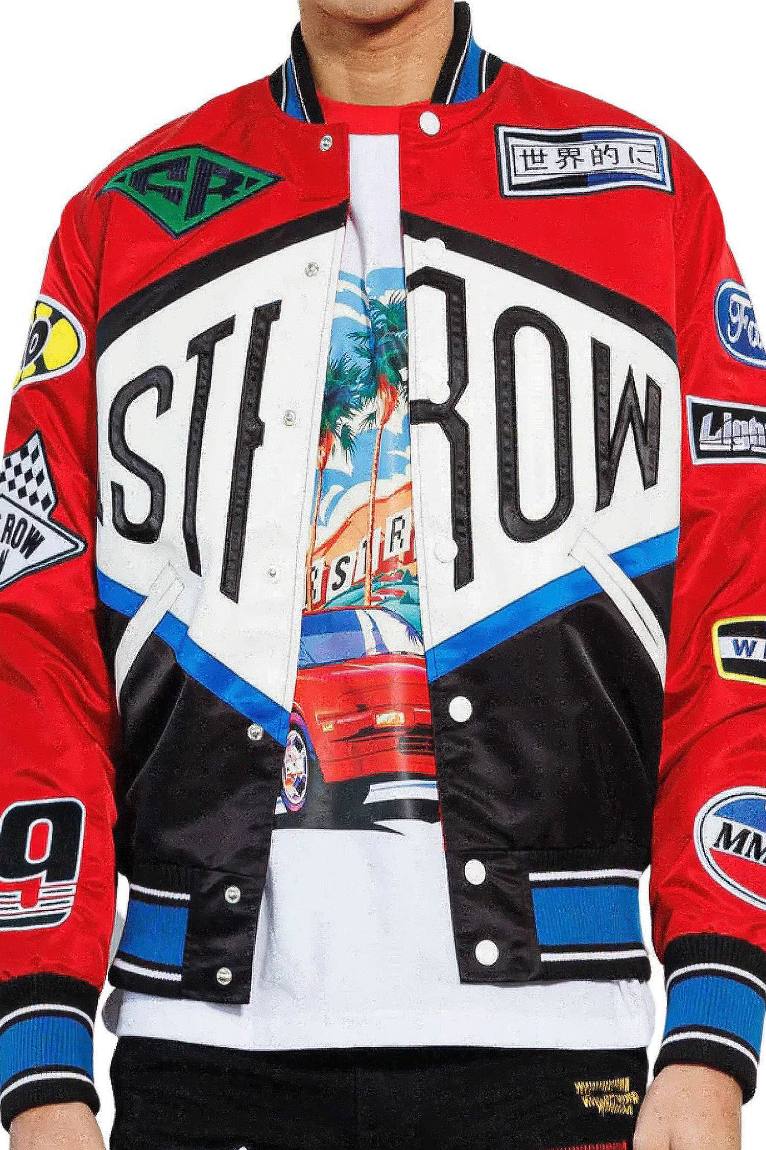 - Custom chenille patches with chain stitches and embroidery details all over.