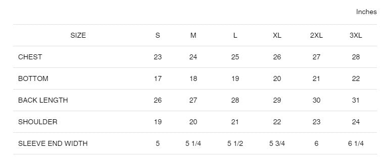 - *SIZE M / CHEST(HALF MEASURE) 25" / FRONT BODY LENGTH 26 1/2" / SLEEVE 26 1/2"