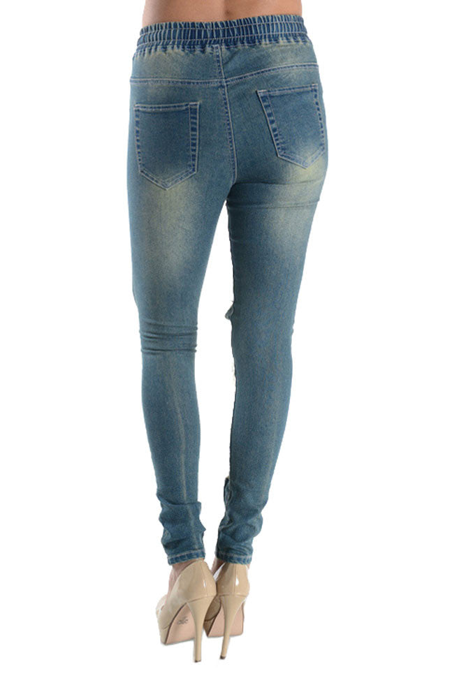 Enjoy all-day comfort in these stretch drawstring waist skinny jeans that have been perfectly ripped and destroyed for you to stay on top of your style game.