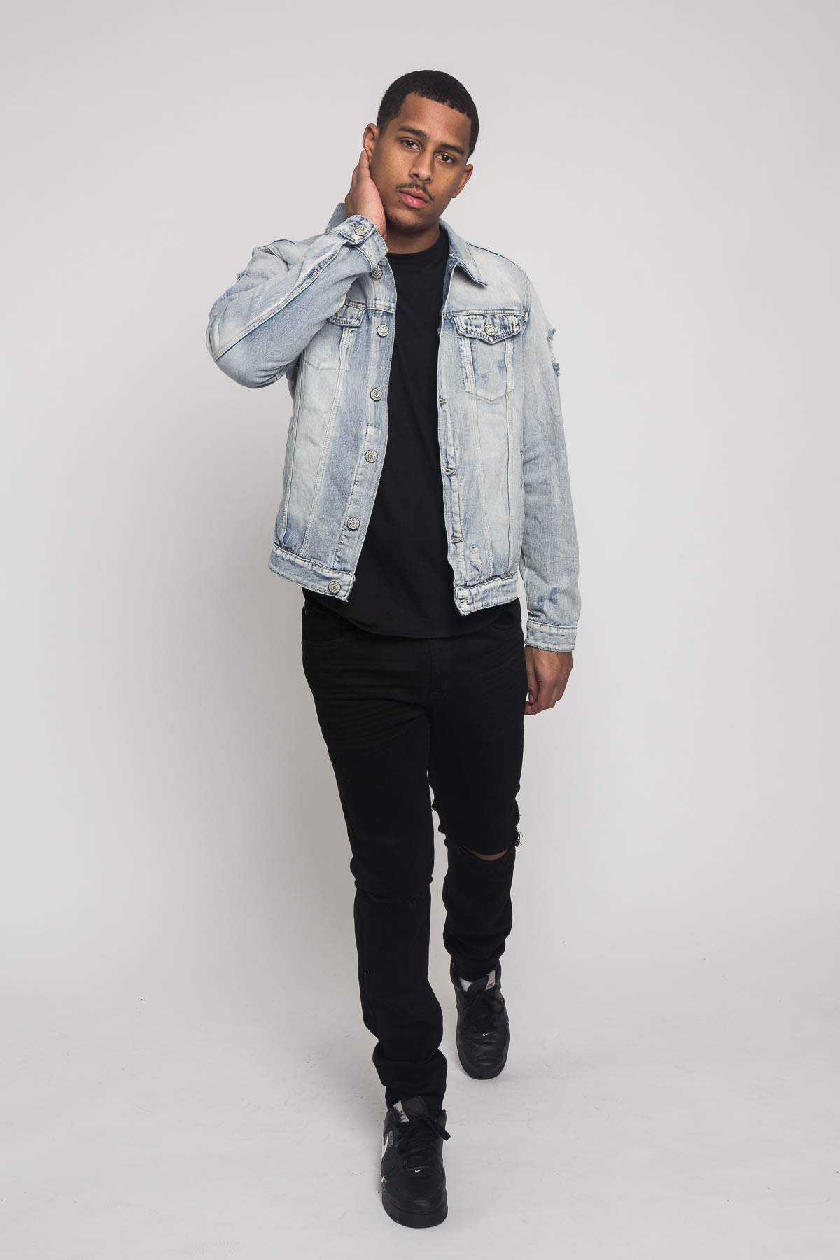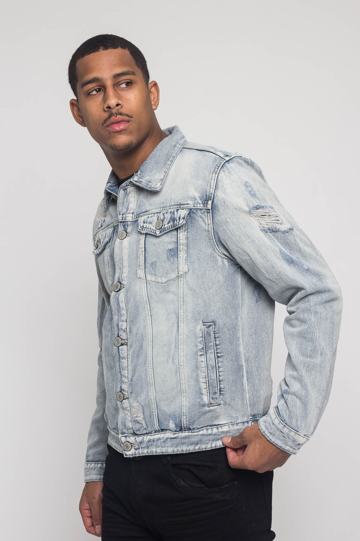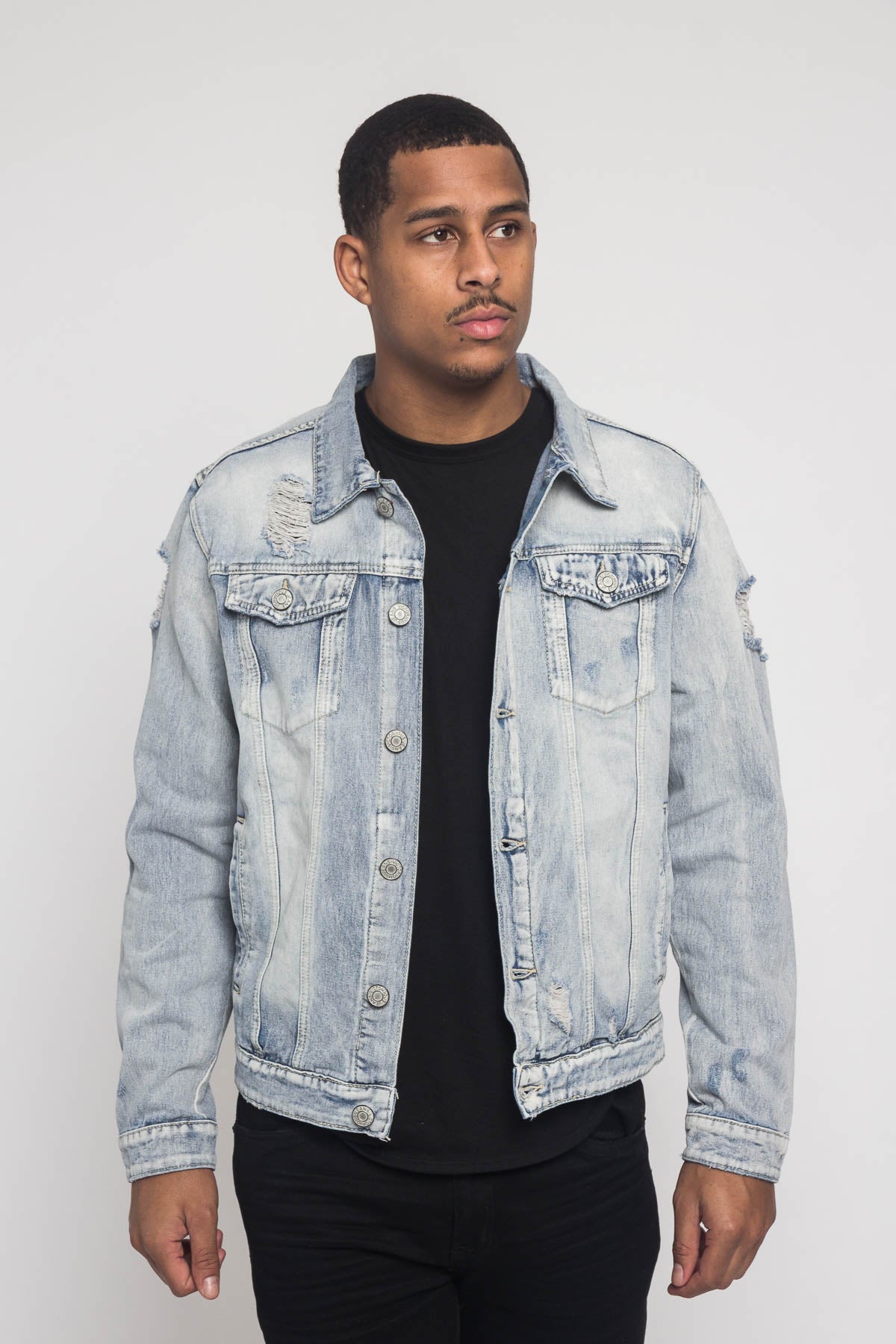 Trade in your old denim jacket and try our new Savage Tiger denim jacket. Perfect for dressing up or down any outfit. This comfortable distressed jacket features a tiger design on the back inspired by the latest trends.