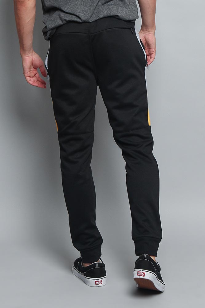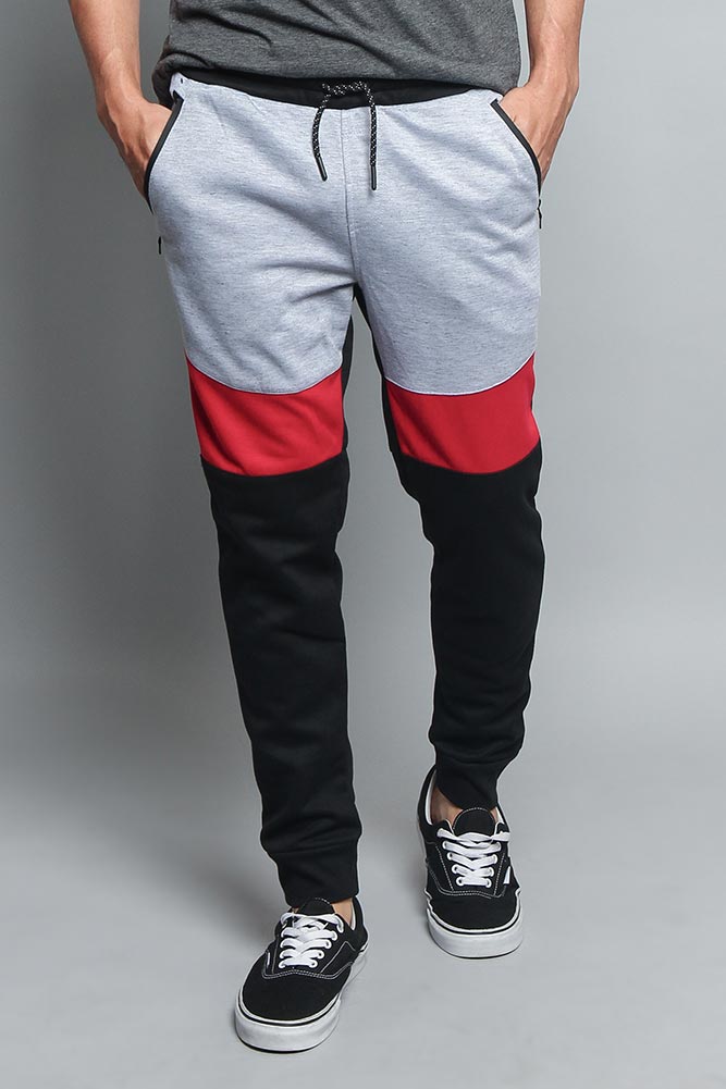 Throw on our new tri colored fitted sweats. Perfect for any cool day, style them together with a plain white tee or dress it up with some nice shoes and a hoodie. Adjustable drawstrings at the waist so you can have a custom fit. These sweats also feature pockets with zippers for full security.