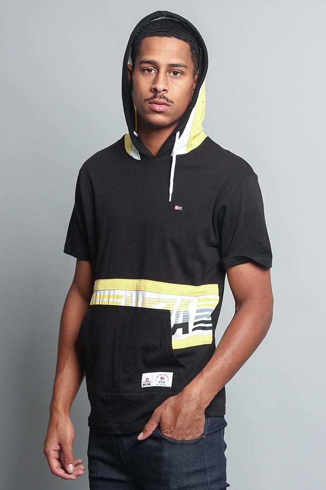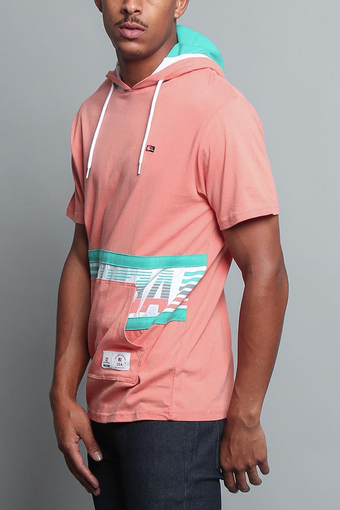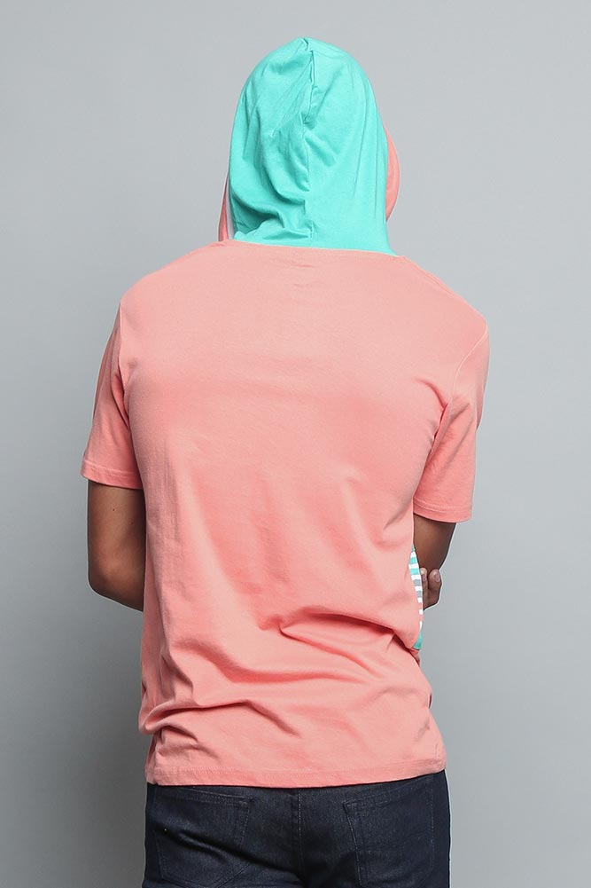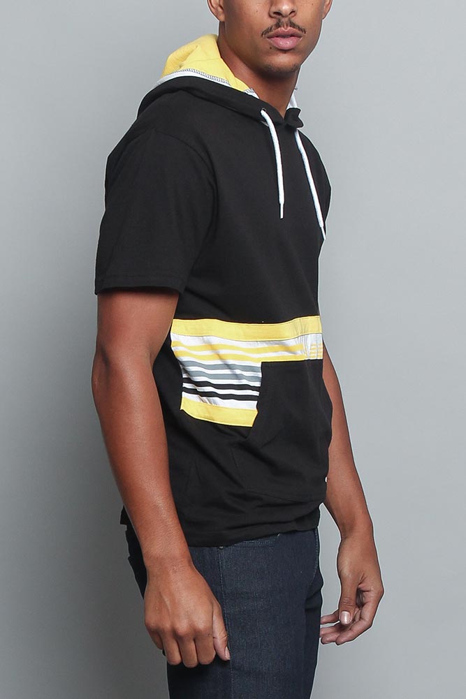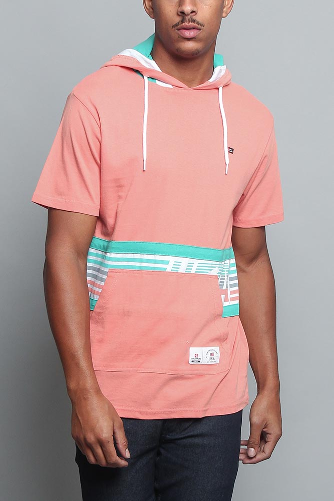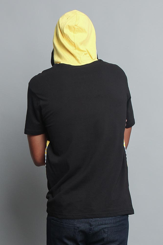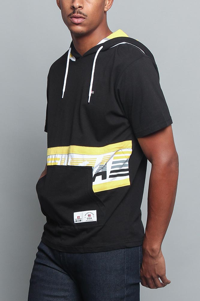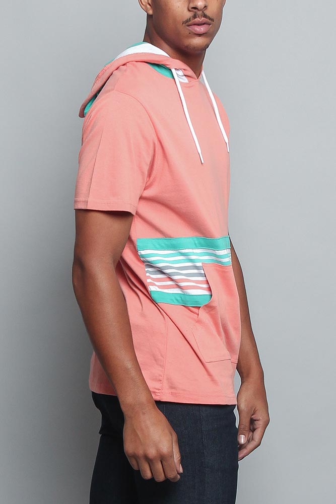 Stay comfortable but look fly in our new hooded tri colored tee. Perfect for casual outfits for any occasion. This tee features three complimenting colors, a drawstring hood, a logo on the pocket, and unique color detail on the hood. Available in four colors to flatter any one!