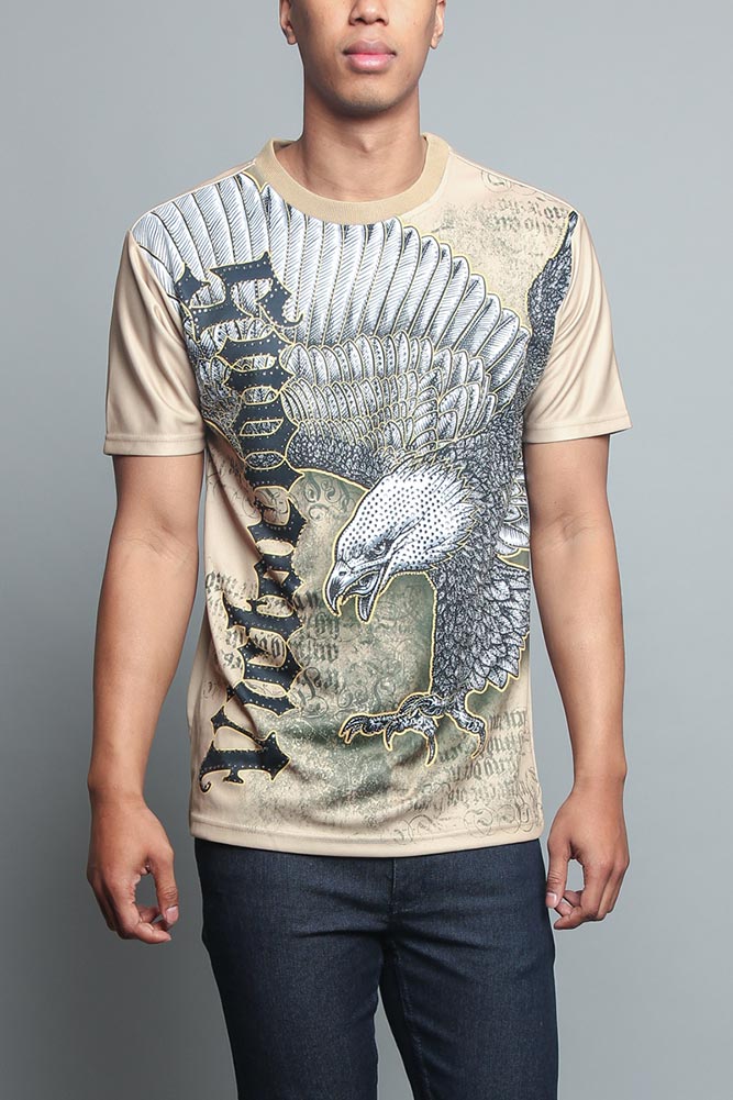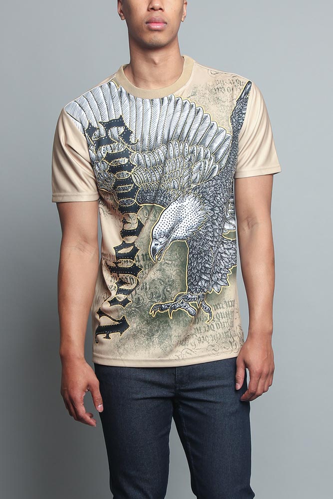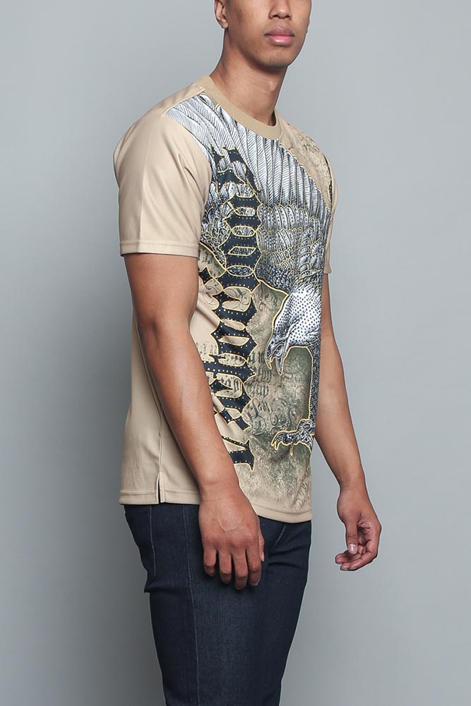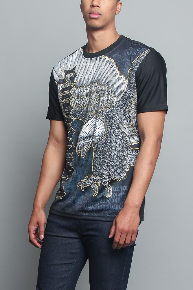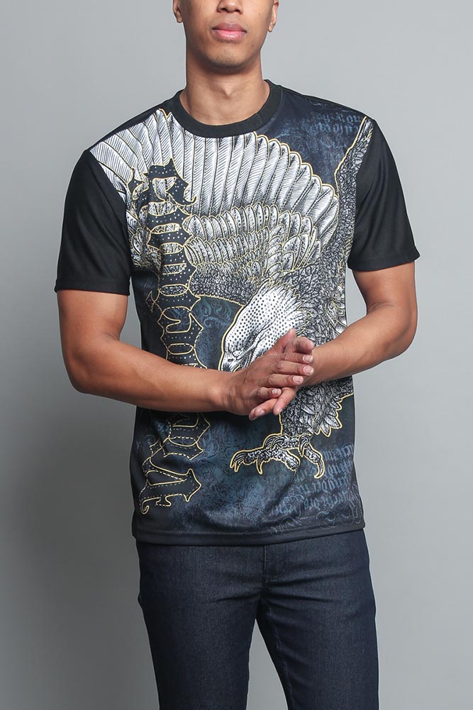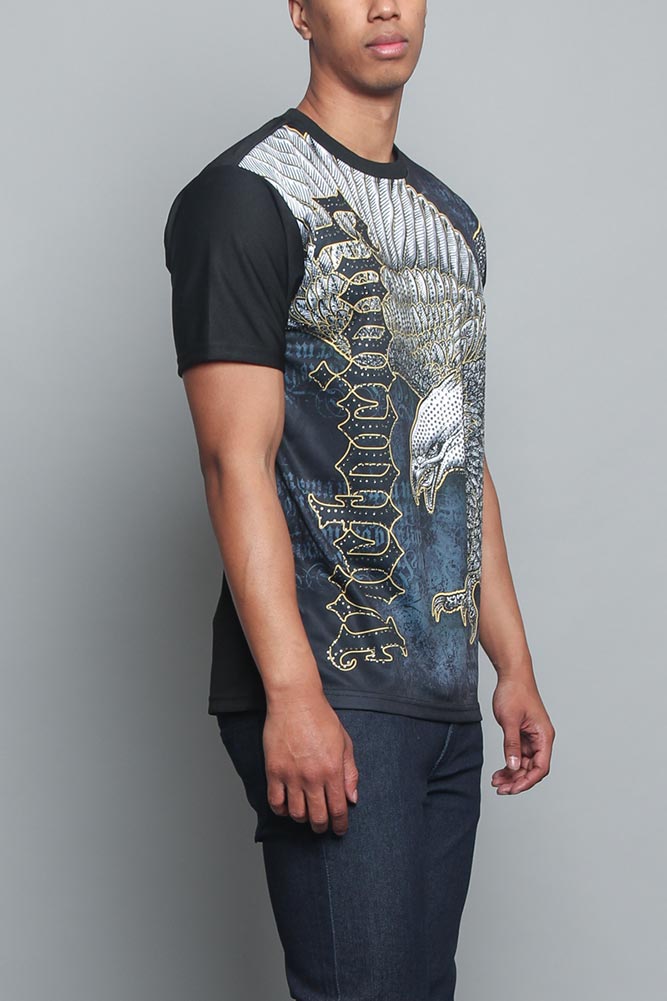 Represent the Home of the Brave with our Victorious Eagle crystallized tee! Stand out and rock any outfit. Perfect for pairing with our DL937 skinny fit jeans. This t-shirt features subtle words, a bold detailed eagle, and crystals to further compliment the tee.