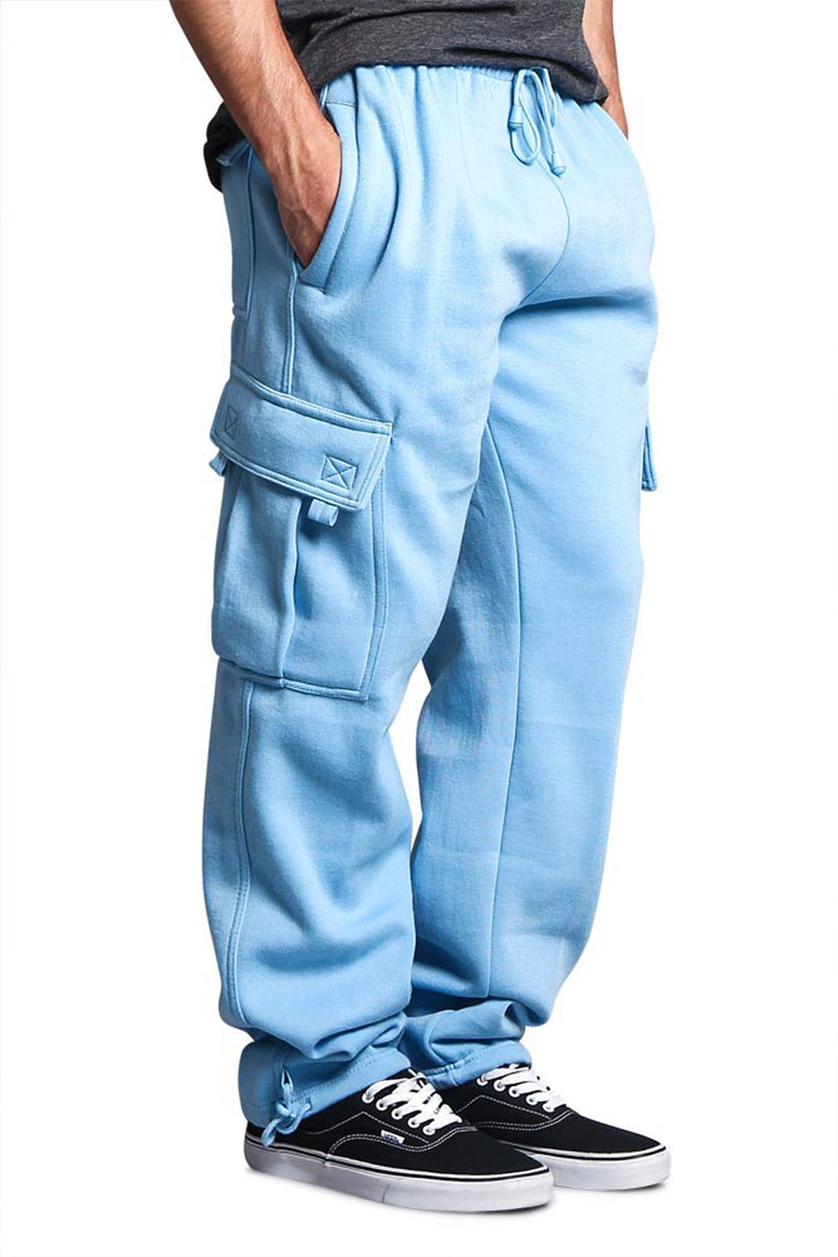 Victorious Men's Solid Fleece Heavyweight Cargo Sweat Pants