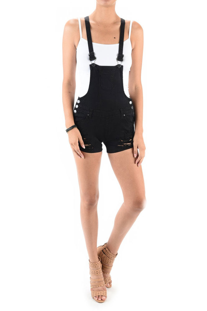 Women's Destroyed Color Denim Short Overalls