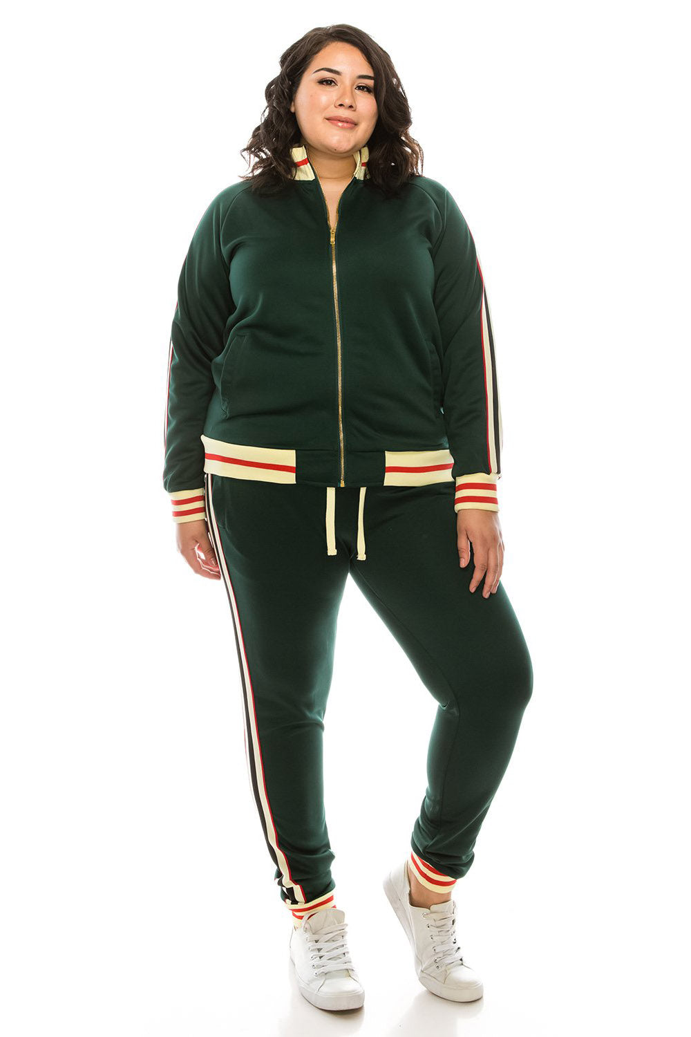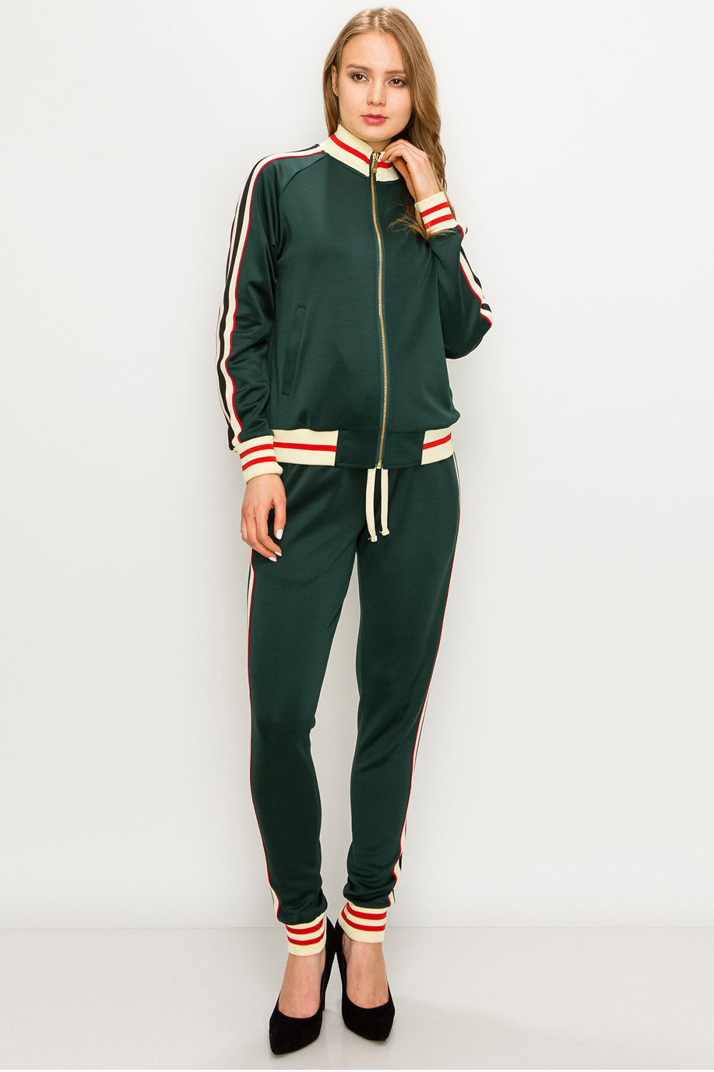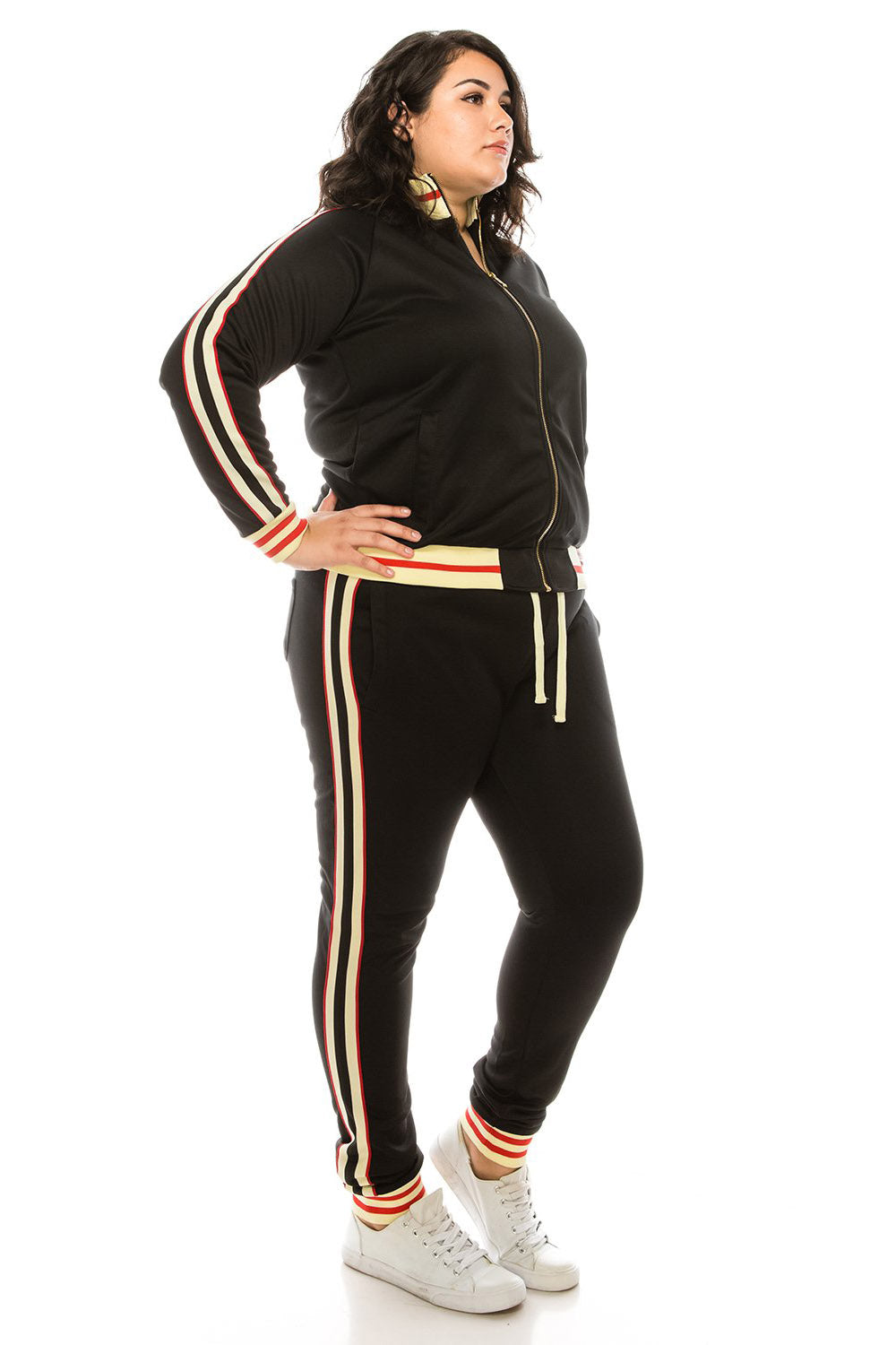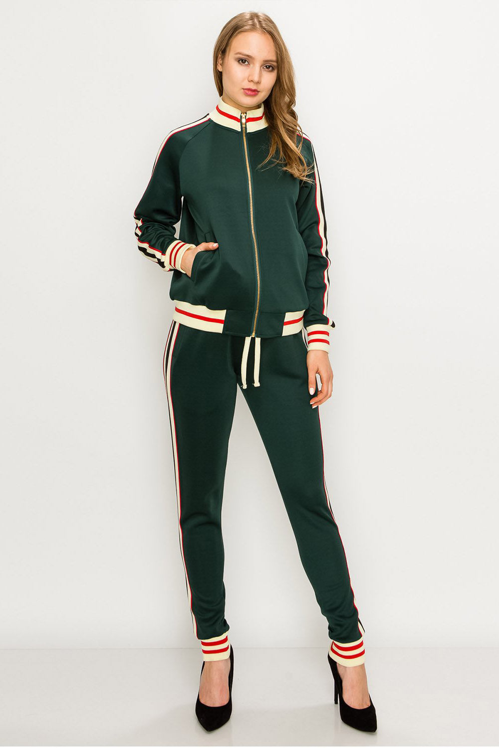 An essential track suit in everyone's closet, this super trendy tracksuit is inspired by high fashion trends without the name brand prices. This track suit features a solid colored base with retro-inspired trimmed detailing along the sides, collar, and cuffs. The perfect outfit to throw on and conquer your day while looking effortlessly fashionable. Dress it up with some heels or go for a casual slay with some sneakers. Pair with our cropped cami (RT32671) to complete this look.