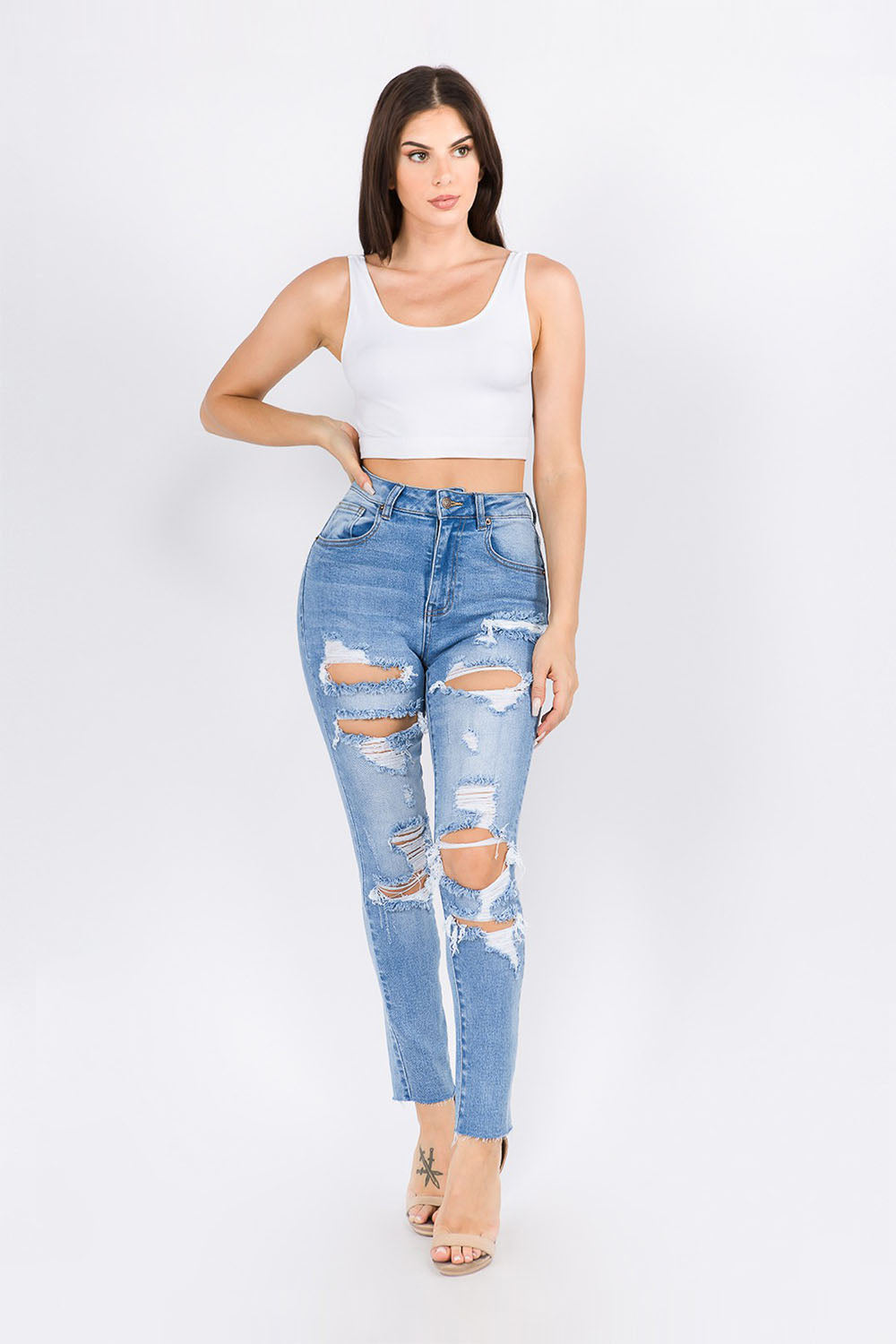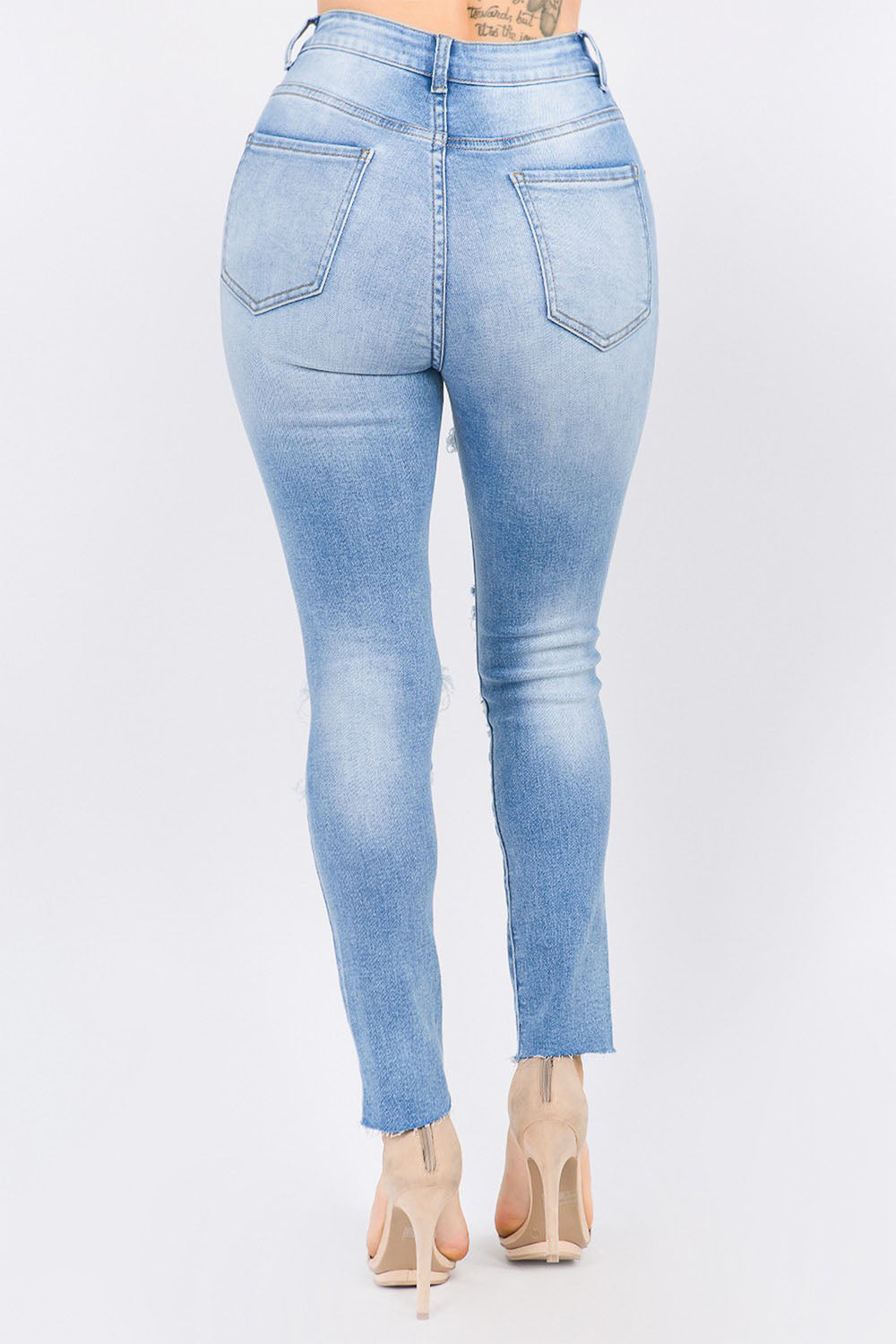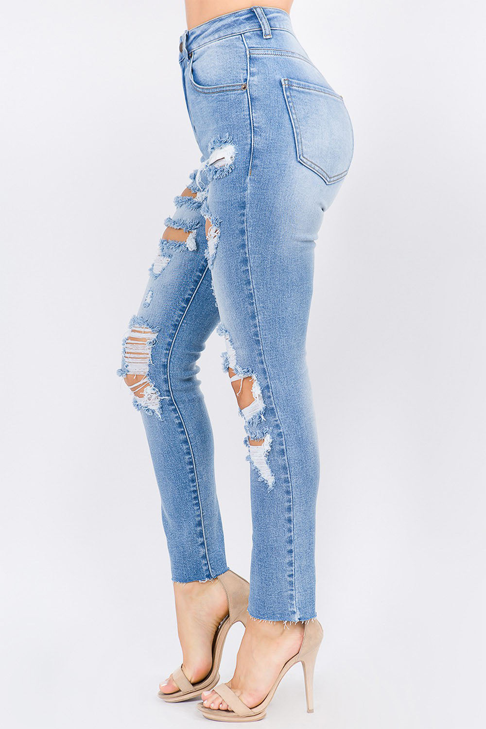 Women's High Rise Distressed Washed Out Denim Skinny Jeans