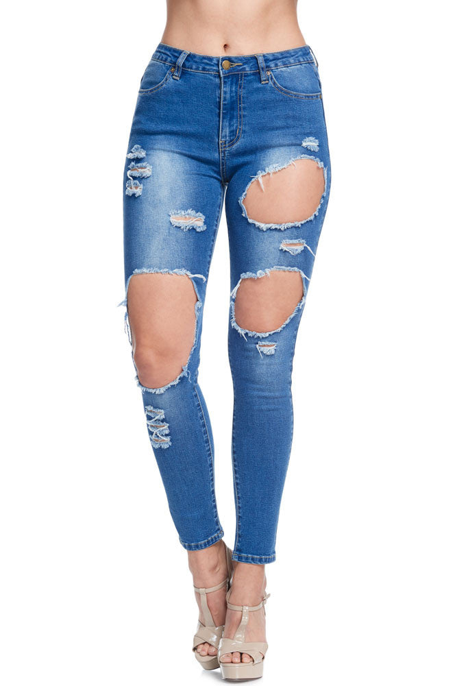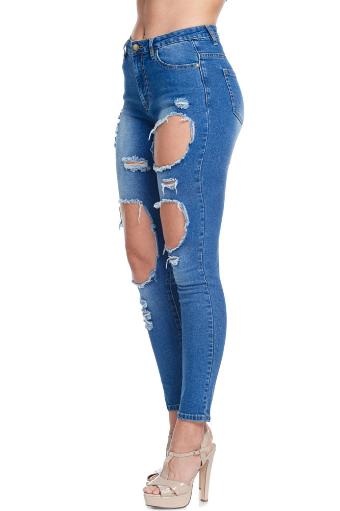 Stay effortlessly stylish and comfortable with the popular and versatile skinny jeans, now in trendy high-waisted, pre-ripped and faded style!