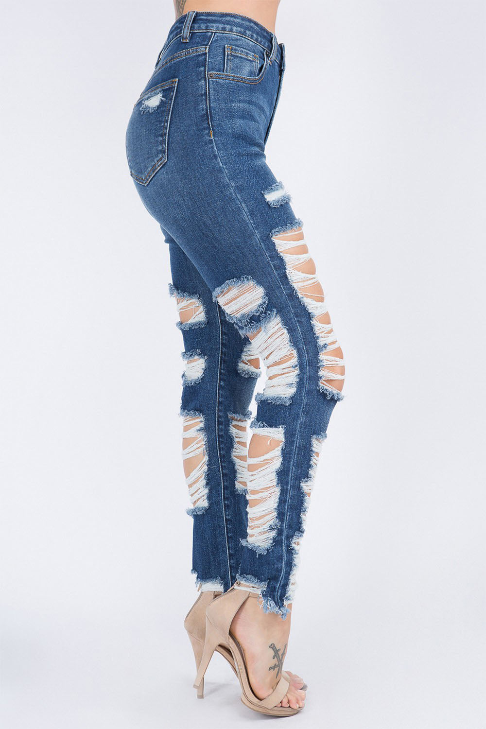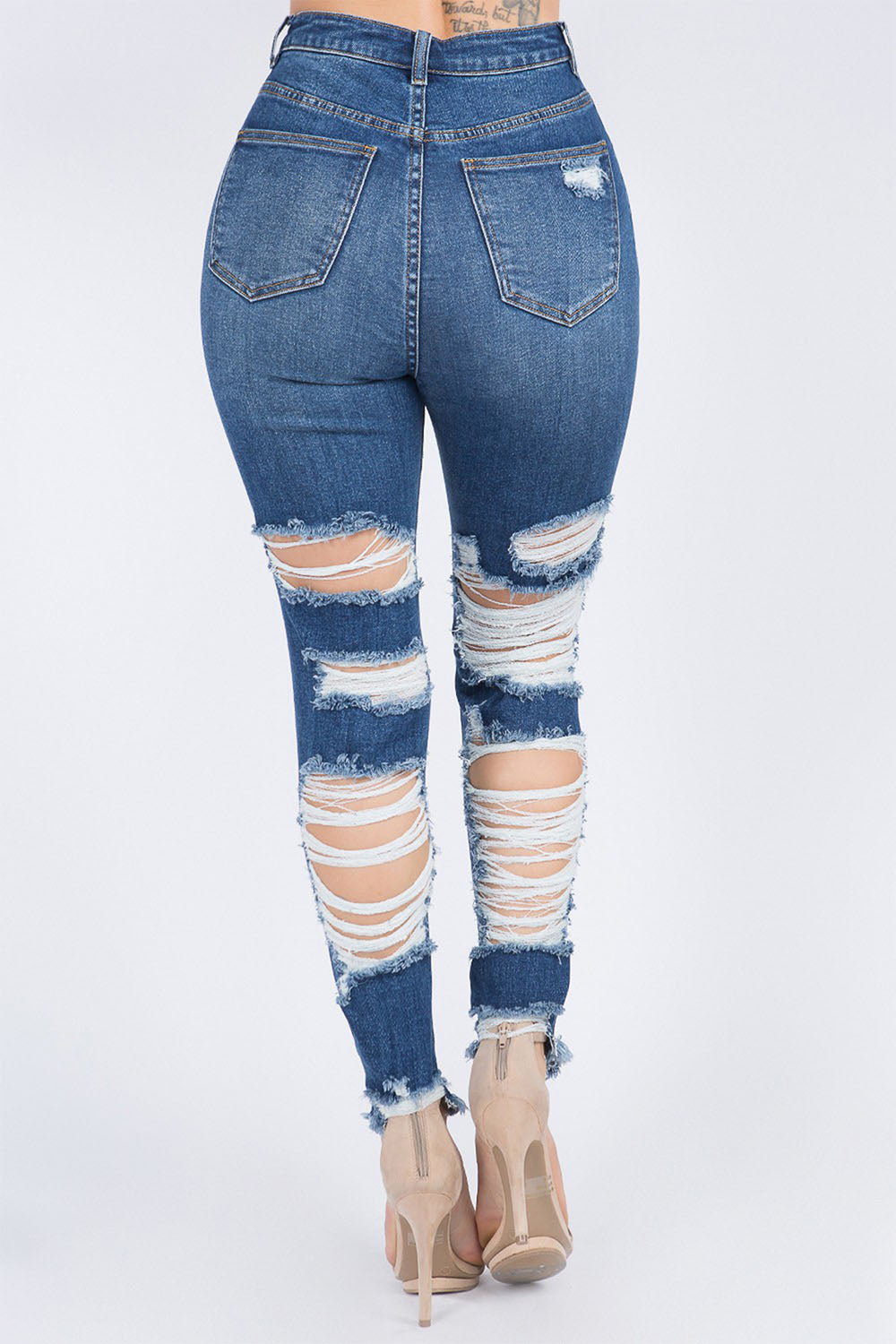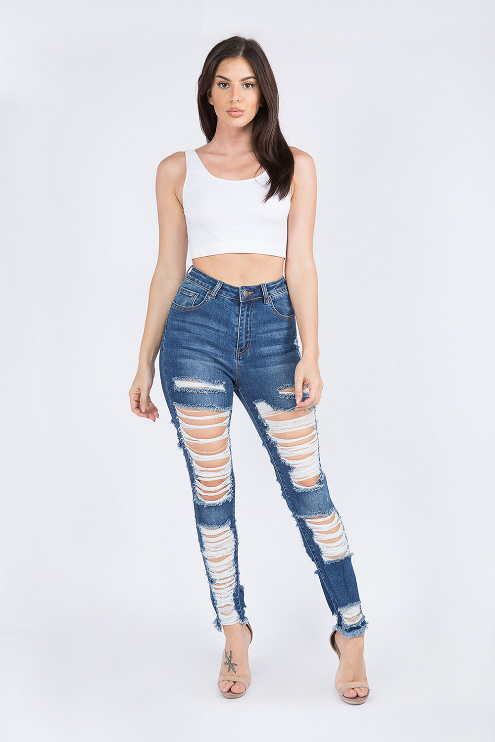 Women's High Waist Heavy Distressing Denim Skinny Jeans