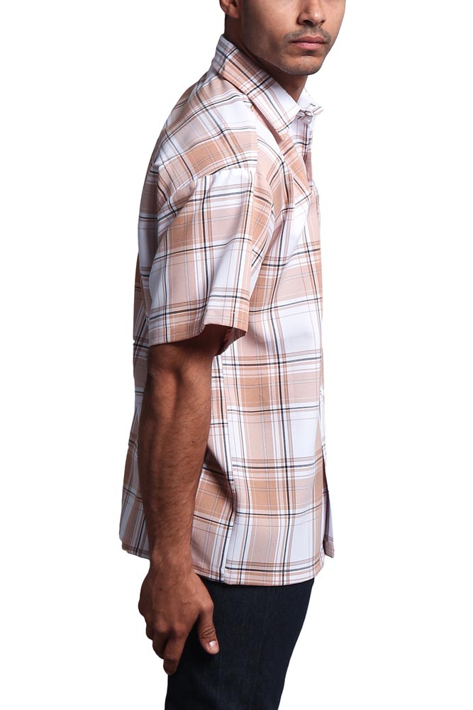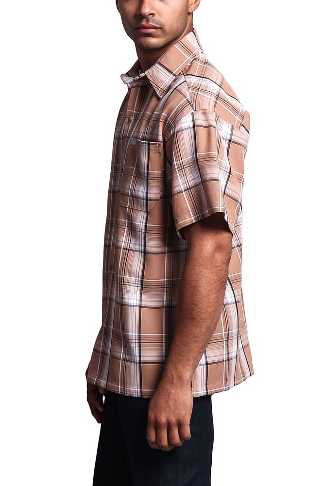 Keep your look classic and confident with this Men’s Short-Sleeve Plaid Button-Up Shirt — a versatile piece designed for comfort, durability, and everyday style. The lightweight woven fabric offers breathability and structure, while the plaid pattern adds timeless appeal. Whether you’re dressing it up with chinos or keeping it casual with jeans, this shirt delivers easy style for any occasion.