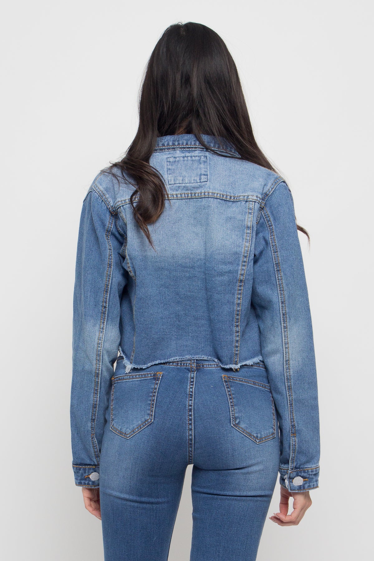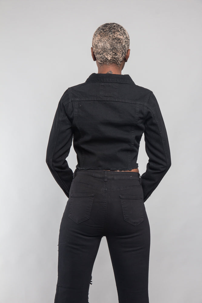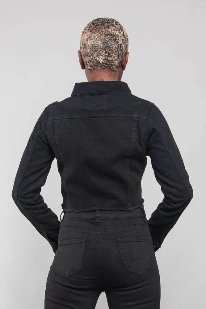 An essential in every girl's closet, this fashionable jacket is the perfect statement piece to compliment any look. With a cropped look to flatter any waistline.